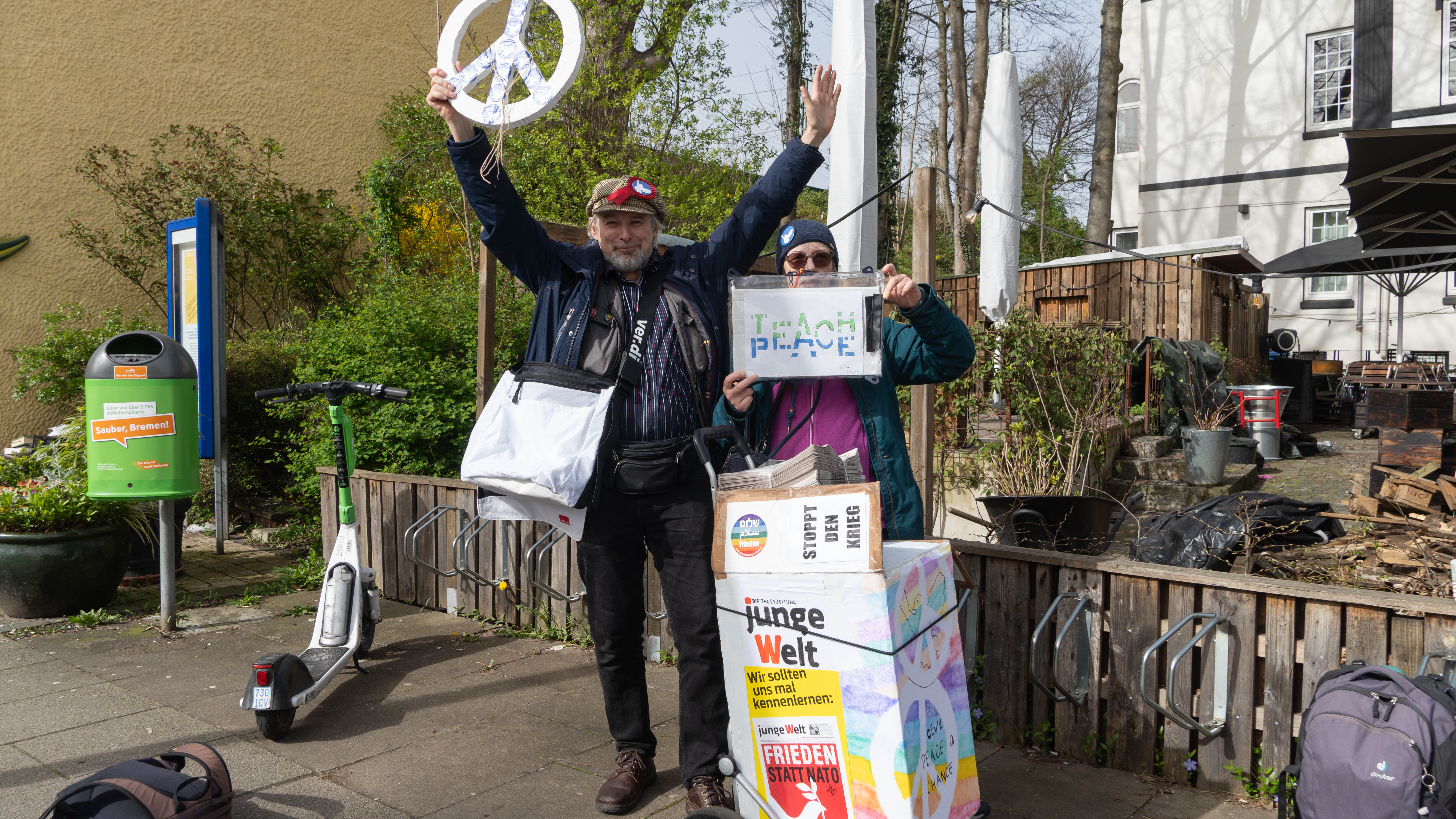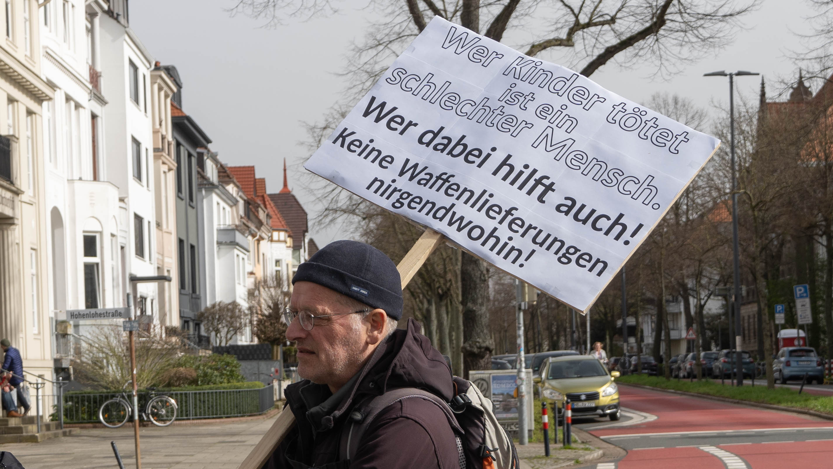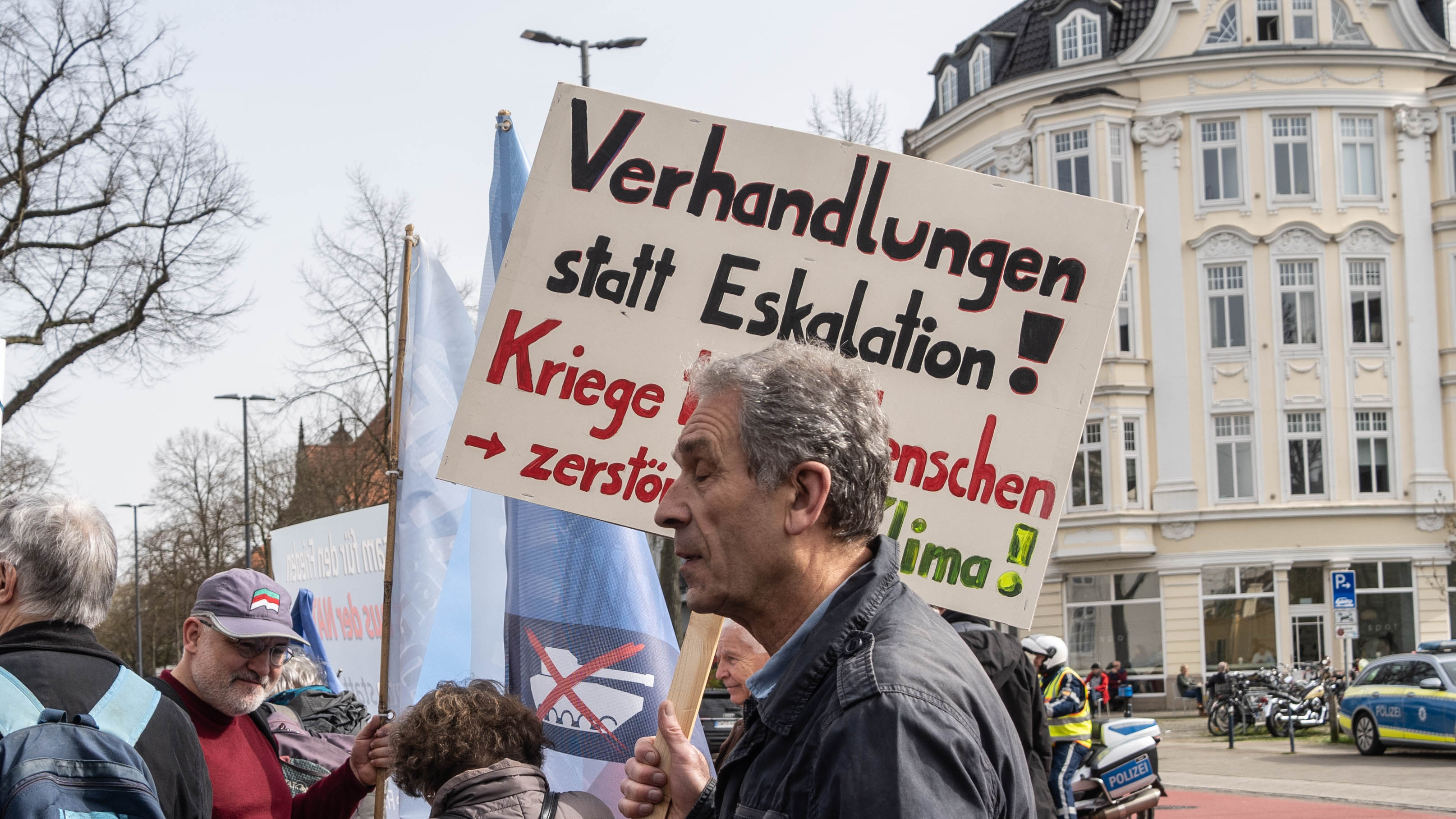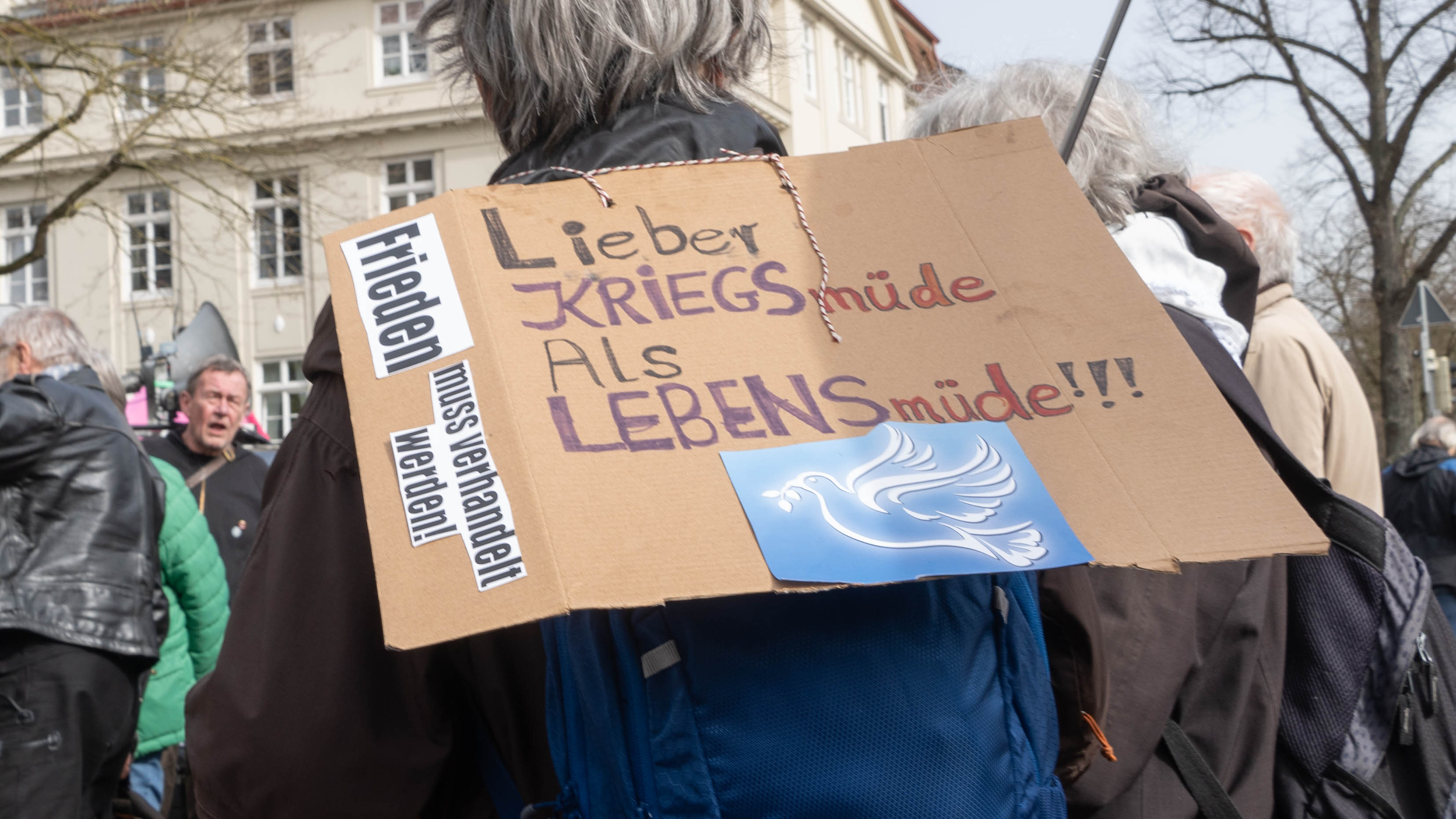Das Bremer Ordnungsamt hatte zeitgleich eine Gegenkundgebung genehmigt. Die Sprecher setzten sich ein für weitere Waffenlieferungen an die Ukraine und lehnten Verhandlungen ab.