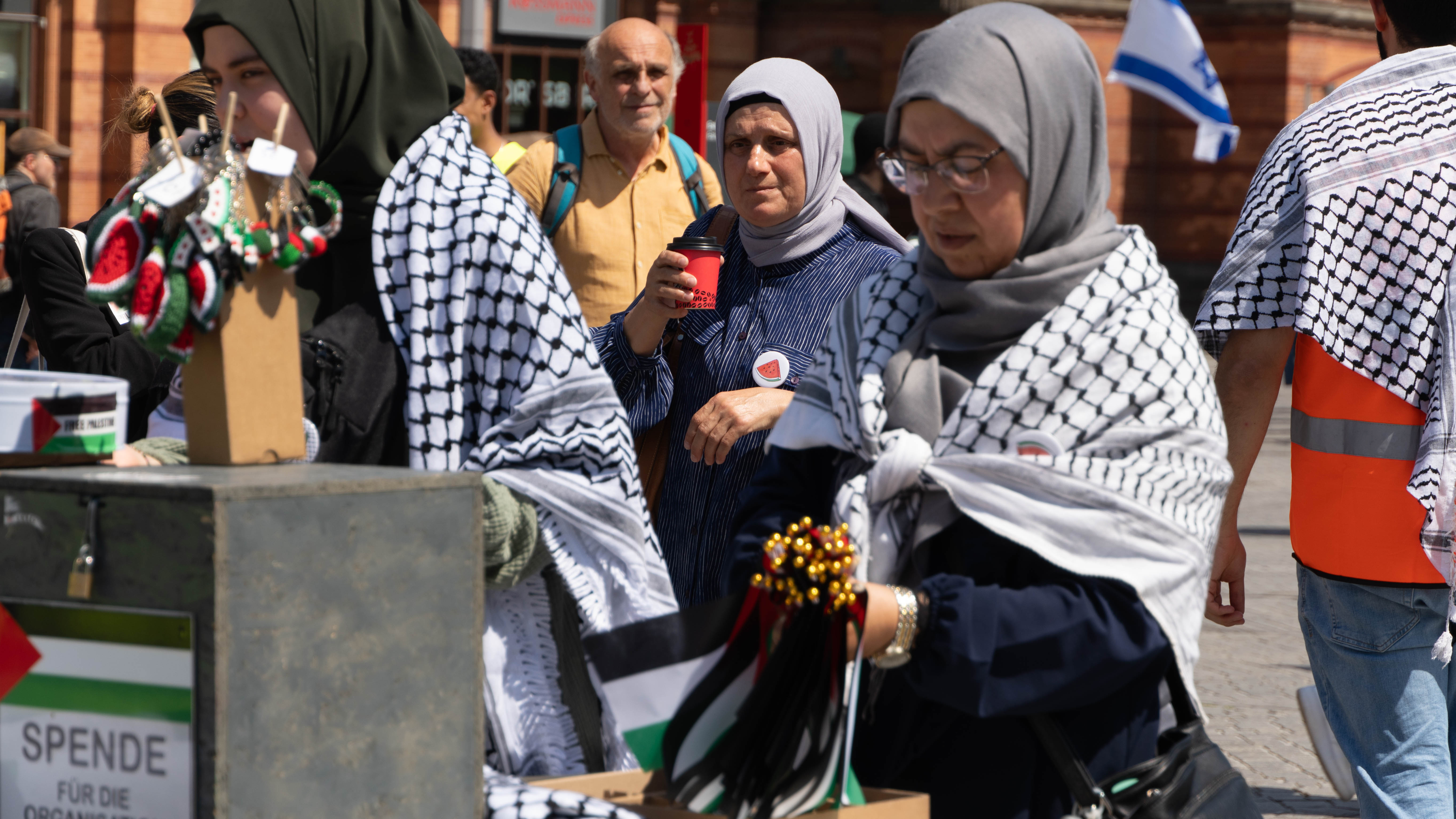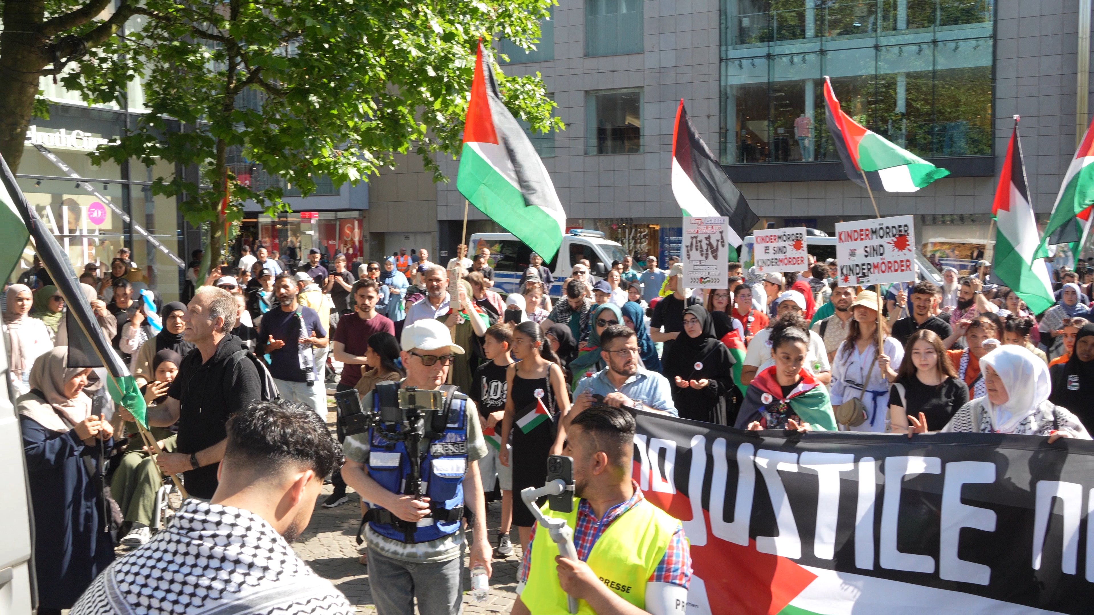 Die Beteiligung an den Free-Gaza-Demos ist nach wie vor hoch. Waren es am Anfang vor dem Hauptbahnhof erst so um die 200 Menschen, kamen während des Zuges immer mehr dazu, so dass auf der Abschlusskundgebung mehr als 500 gezählt werden konnten.