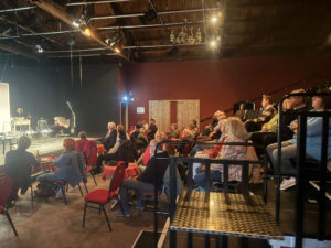 Jetzt lebt er im Exil als Wissenschaftler in Italien und schreibt, forscht und berichtet über Gaza und palästinensische Themen von Bedeutung. Es wird spanned werden, die verschiedenen Lebenserfahrungen in verschiedenen Funktionen gerade vor dem Hintergrund des genozidalen Krieges in Gaza zu erfahren. Zu Beginn der Veranstaltung las Atef auf arabisch zur athmosphärischen Einstimmungg eine Passage aus seinem Roman. Der Schauspieler Ralf Knapp vom Kriminaltheater las anschließend eine Passage auf deutsch aus dem Roman, woran sich eine sehr spannende Fragerunde auf dem Podium mit Atef ergab. Als Übersetzer fungierten jeweils unsere DPG-Vorstandsmitglieder Johannes Waehneldt und Frauke Wöltjen.