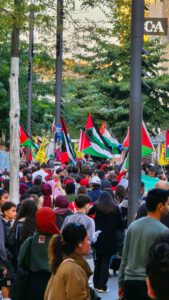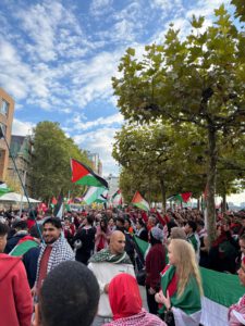 Die Demonstration in Berlin mit über 100.000 Teilnehmern konnten die Mainstream-Medien dieses Mal nicht verschweigen. In Berlin waren auch viele Bremer Akktive anwesend. Die Palästinensische Gemeinde in Bremen und Umgebung e.V. (PGB) hatte vor allem für die zweite große Demonstration an diesem Sonnabend in Düsseldorf mobilisiert. Es beteiligten sich mehr als 12.000 Menschen. Für die Bremer hielt das Mitglied unserer Orgagruppe für die wöchentlichen Demos Ebubekir Kilinc eine eindrucksvolle Rede. Am 4. Oktober 2025 werden wieder alle in Bremen bei der nächsten Demonstration dabei sein! Fotos und Video: Instagram-Kanal der Palästinensischen Gemeinde Bremen.