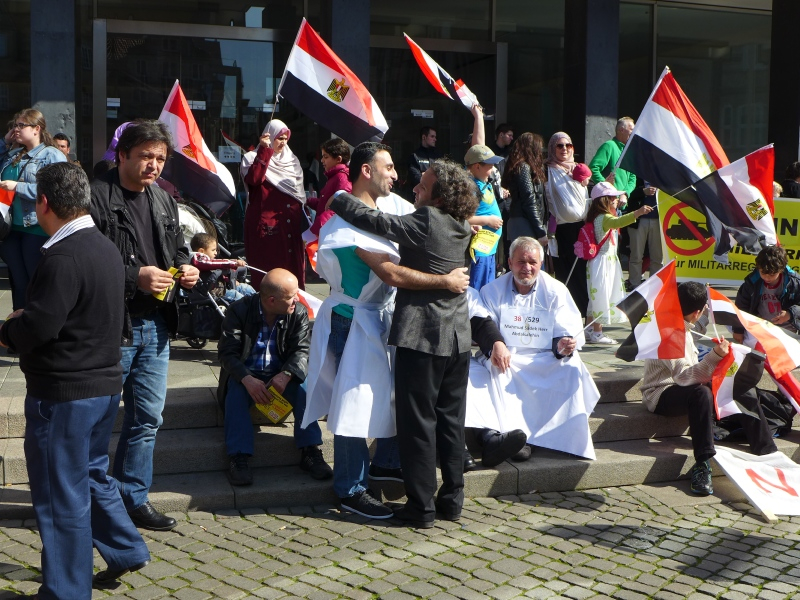 Die stark religiöse Ausrichtung der Kundgebung und das Lob von einigen Rednern für die Muslimbrüder und ihren jetzt inhaftierten Expräsidenten Mohammed Mursi gefielen längst nicht allen Zuhörern auf dem Marktplatz. Auch wenn jetzt die Militärs eine zutiefst undemokratische Diktatur errichtet hätten, dürfe man nicht vergessen, dass es während der kurzen Regierung Mursis nicht gerade tolerant zugegangen sei, und dass andere Religionen, z.B. die islamischen Schiiten und die christlichen Kopten unter starken Ausschreitungen zu leiden hatten, ohne dass die Regierung eingegriffen hätte.