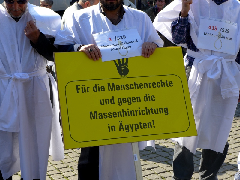 Im April waren im jüngsten Massenprozess 683 vorwiegend Anhänger der Muslimbrüderschaft zum Tode verteilt worden. Im März hatte schon ein ähnlicher Prozess mit 529 Todesurteilen stattgefunden. Nach internationalen Protesten wurden die meisten Urteile in lebenslange Haft umgewandelt. Zehntausende sind verhaftet und werden in menschenunwürdigen Gefängnissen eingesperrt.
